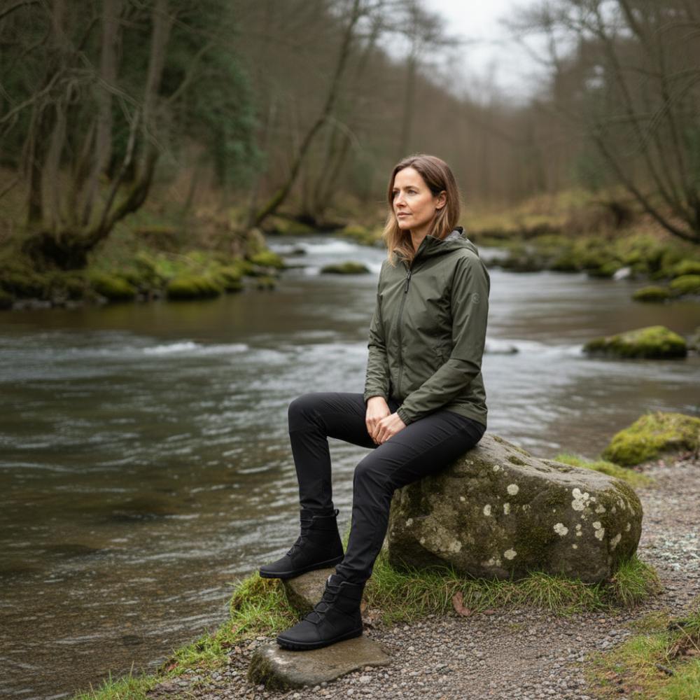 Outdoor rubber sole with zero heel, thus relieving the spine and protecting the joints, supports the natural posture