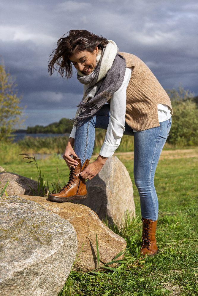 These boots in a beautiful brown tone present themselves in a timeless design with a practical lacing and a zipper at the bereau for simple tightening and taking off. Made from Premium Nappaleder, they not only offer an outstanding look, but also durability and comfort.