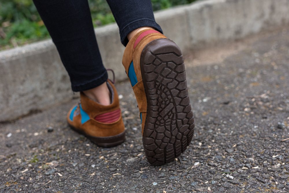 Outdoor rubber sole with zero heel, thus relieving the spine and protecting the joints, supports the natural posture