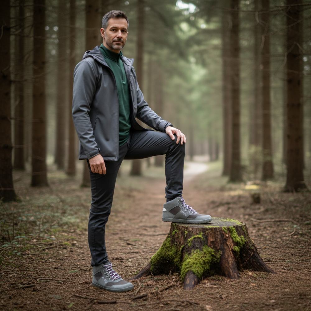 Bereit für jedes Abenteuer – mit HIQE Mid Dark Grey Waterproof meisterst Du Deine Outdoor-Touren mit Leichtigkeit und Komfort. Dieser Barfußschuh vereint sportliches Design mit funktionaler Ausstattung und sorgt für ein natürliches Laufgefühl – egal ob auf Waldwegen, im Gebirge oder bei nassem Wetter.