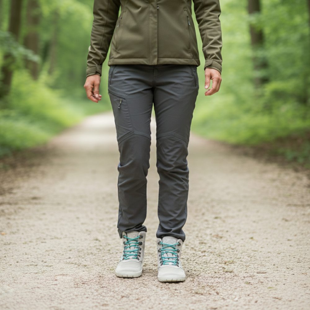 Unter Dir arbeitet eine dünne, hoch flexible Barfußsohle mit Nullsprengung für natürliches Abrollen und eine entspannte, aufrechte Haltung. Der großzügige Zehenbereich schenkt spürbar Freiheit, nichts drückt – auch wenn der Weg länger wird. Das griffige Profil sorgt für sicheren Tritt auf Waldpfad, Schotter oder Stadtpflaster, der gepolsterte Schaft liegt weich am Knöchel und die Hakenösen machen das Schnüren schnell und präzise.
