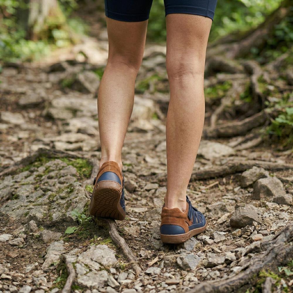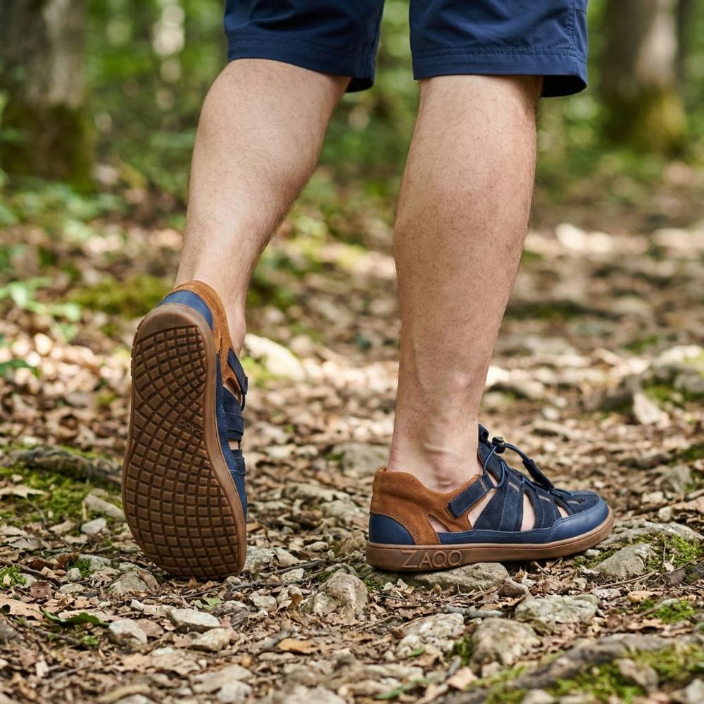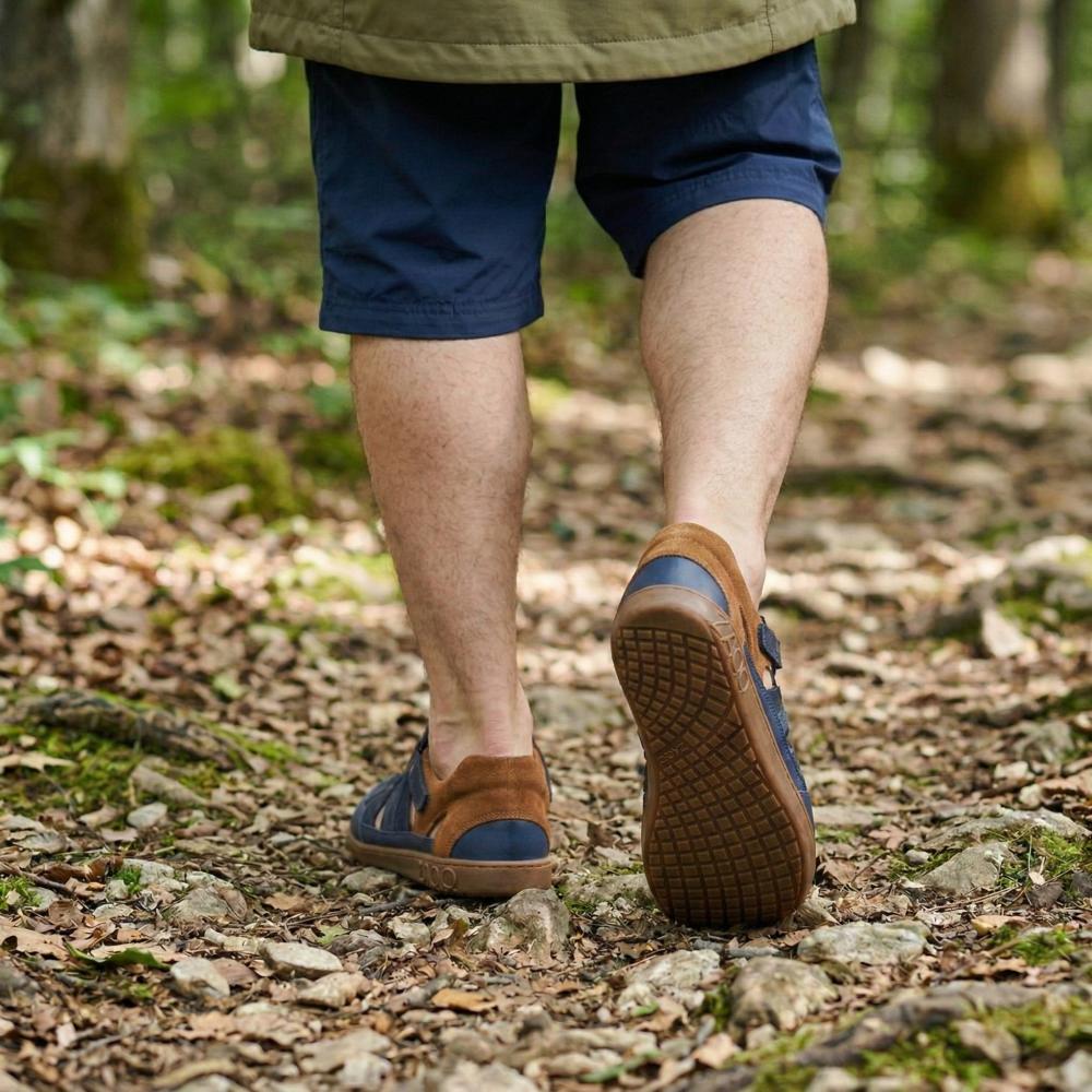Outdoor rubber sole with zero heel, thus relieving the spine and protecting the joints, supports the natural posture