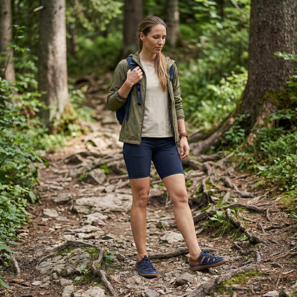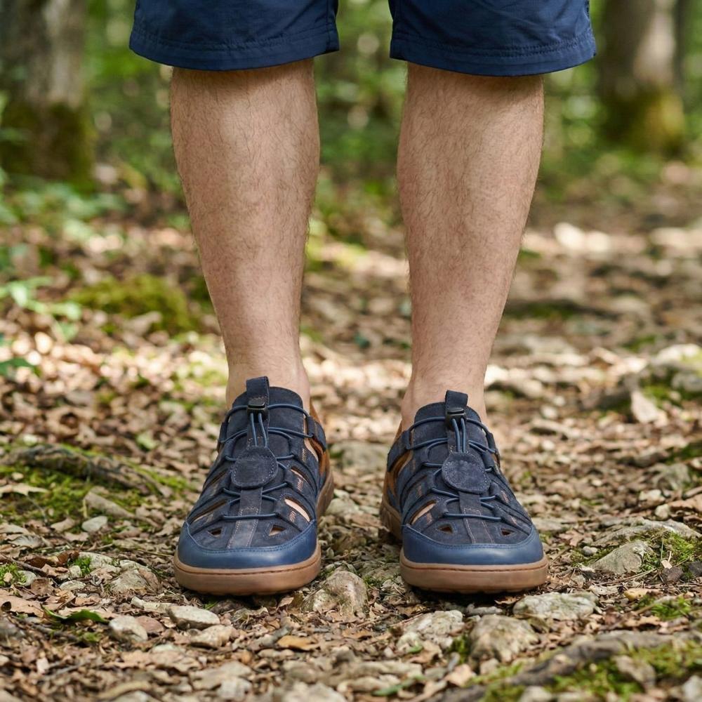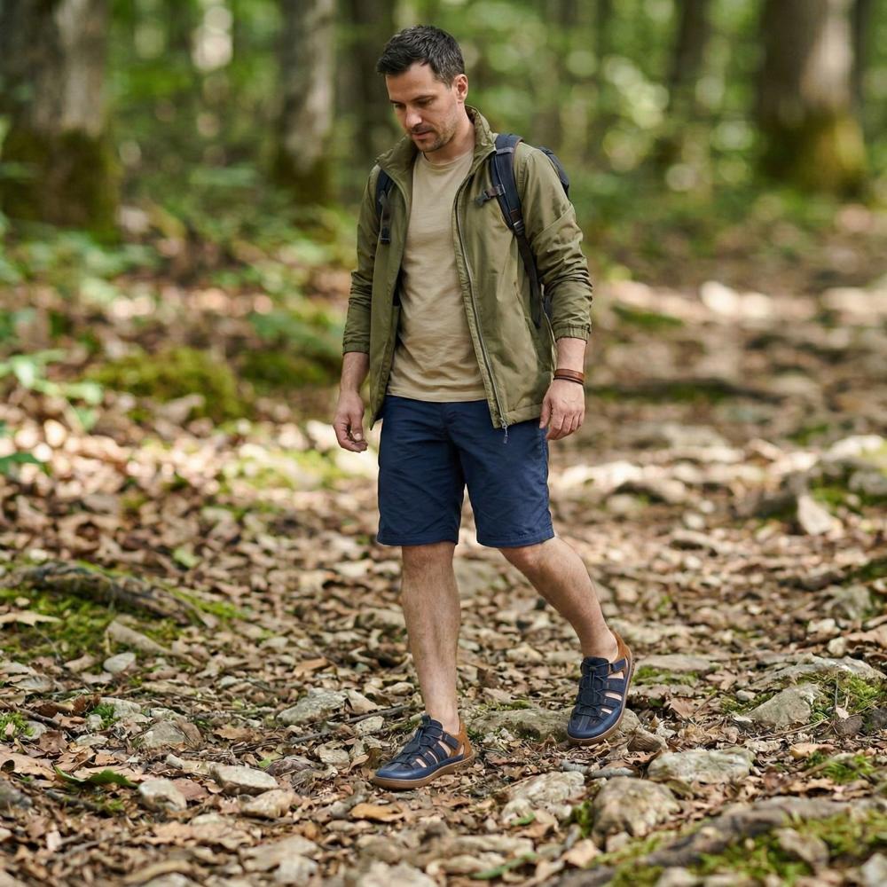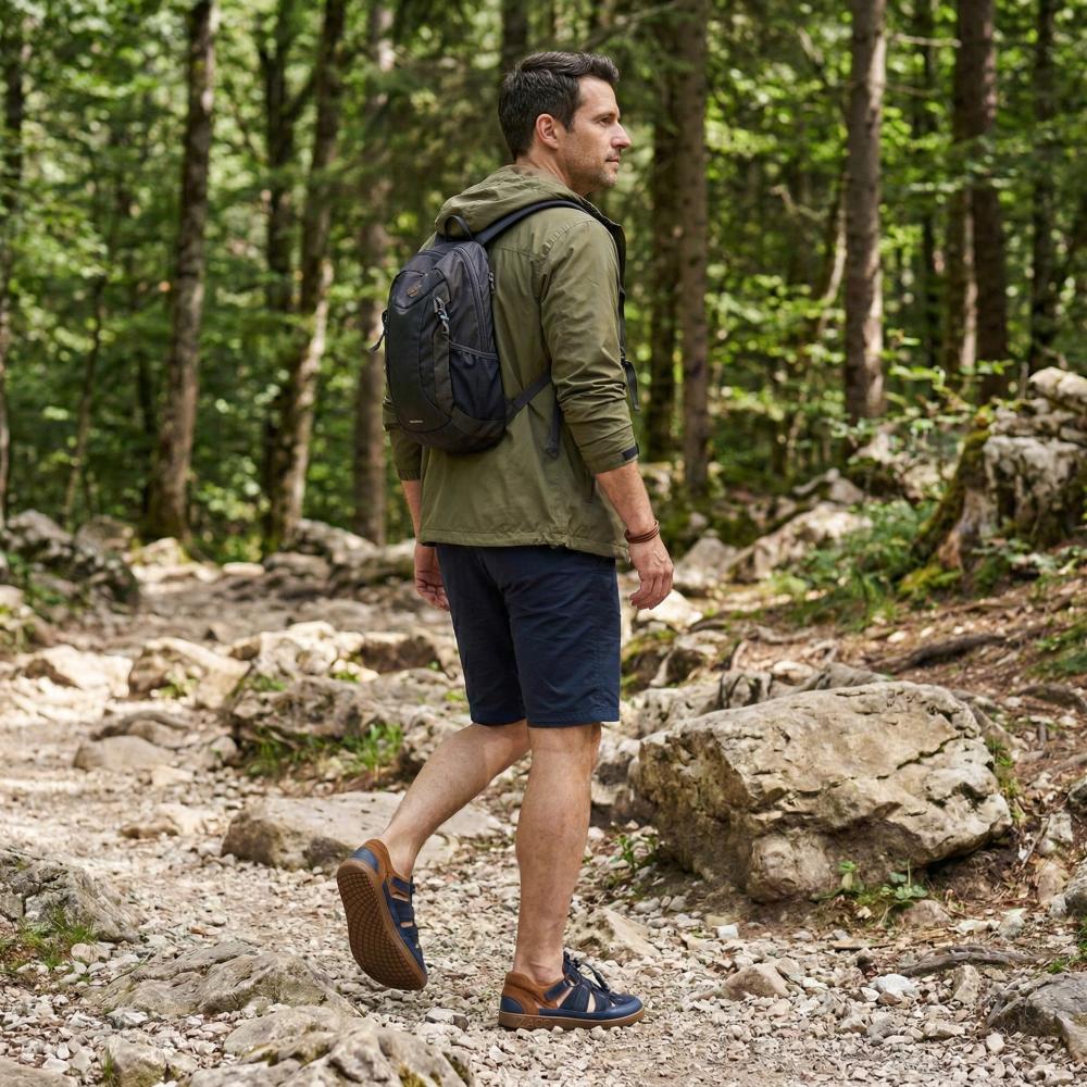 Outdoor rubber sole with zero heel, thus relieving the spine and protecting the joints, supports the natural posture