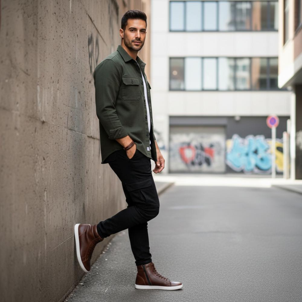 Do you want a stylish look that is megacool at the same time? Then combine brown leather sneakers with a chic shirt and white or black jeans. To create a break in style, you can also confidently carry it to the blue suit!