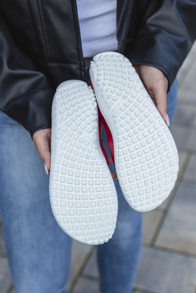 Rubber sole with zero heel, thus relieving the spine and protecting the joints, supports the natural posture