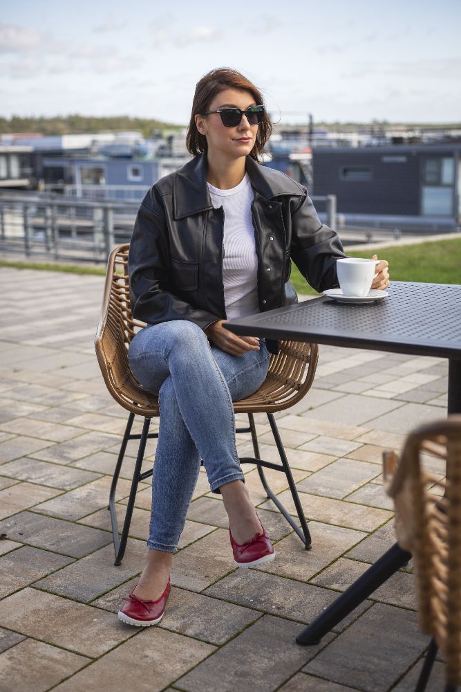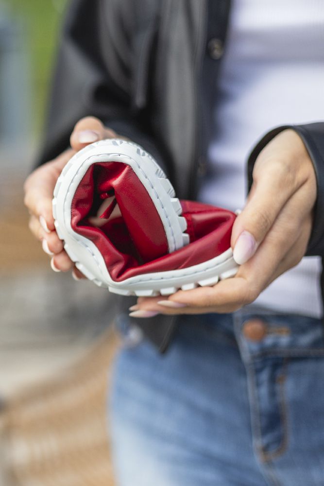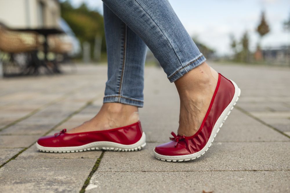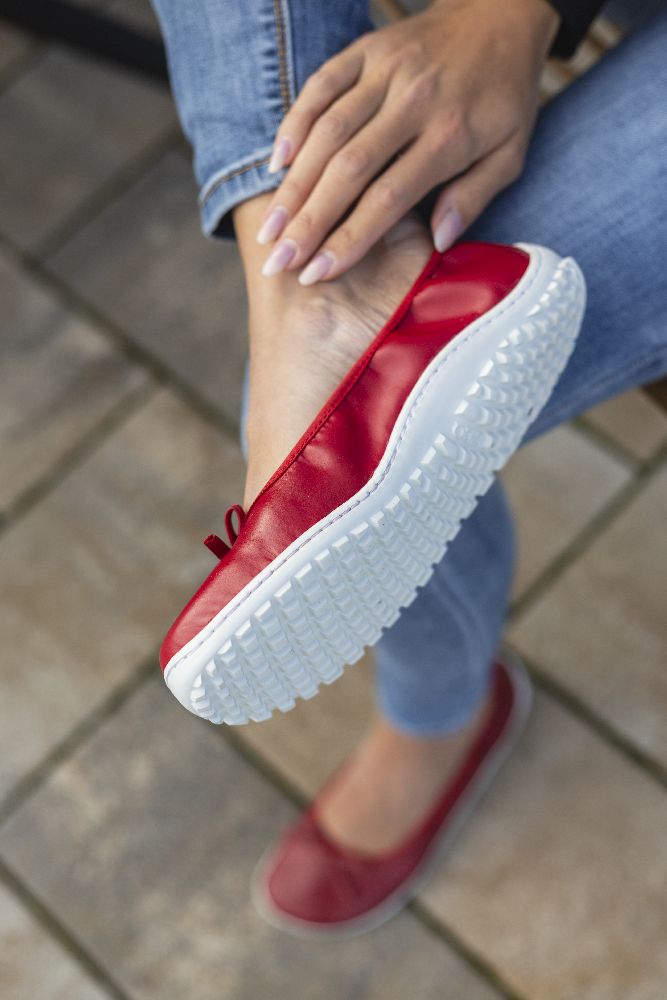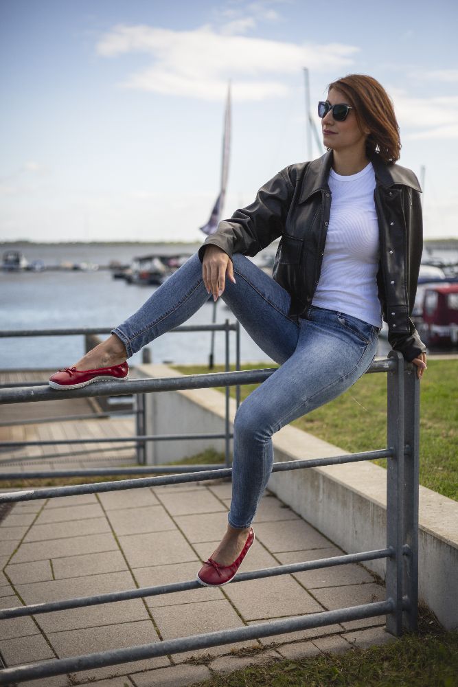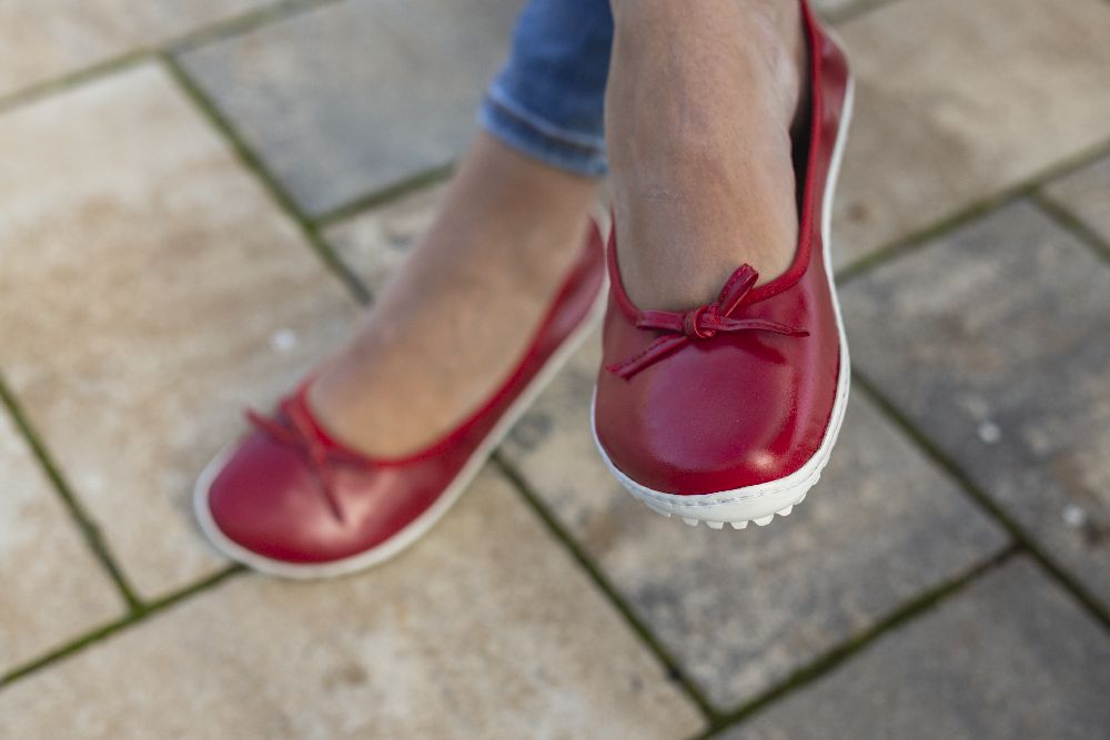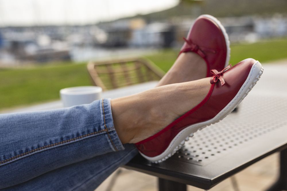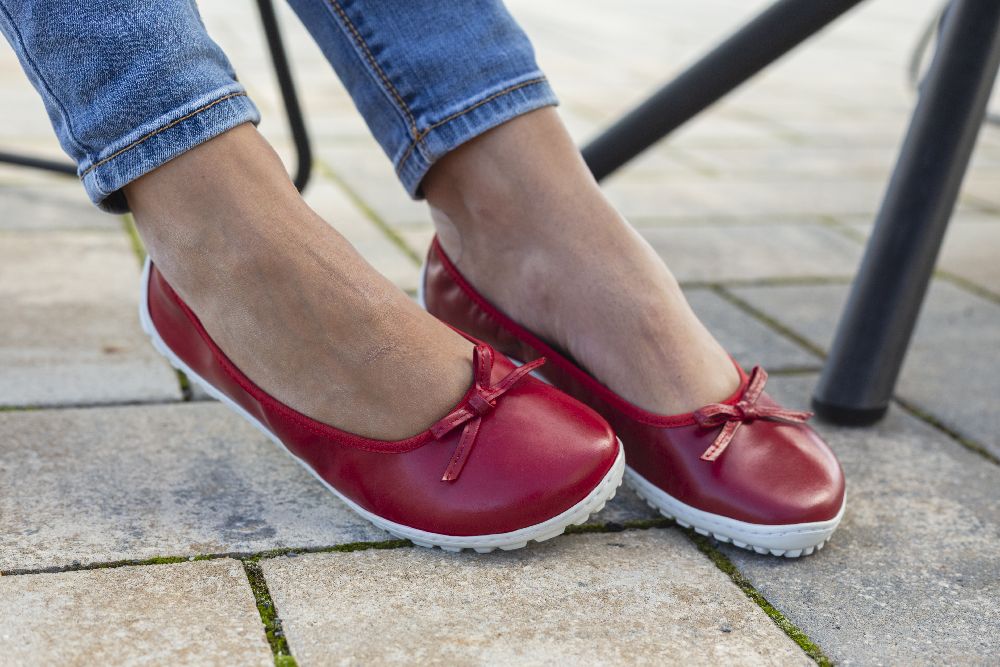 The fine, dark red smooth leather and the subtle loop give the ballerina a delicate, feminine look. Through the broken sneaker sole, he looks sporty, fresh and modern. The barefoot sole also ensures good grip and at the same time is so thin and flexible that your feet feel the floor with every step.